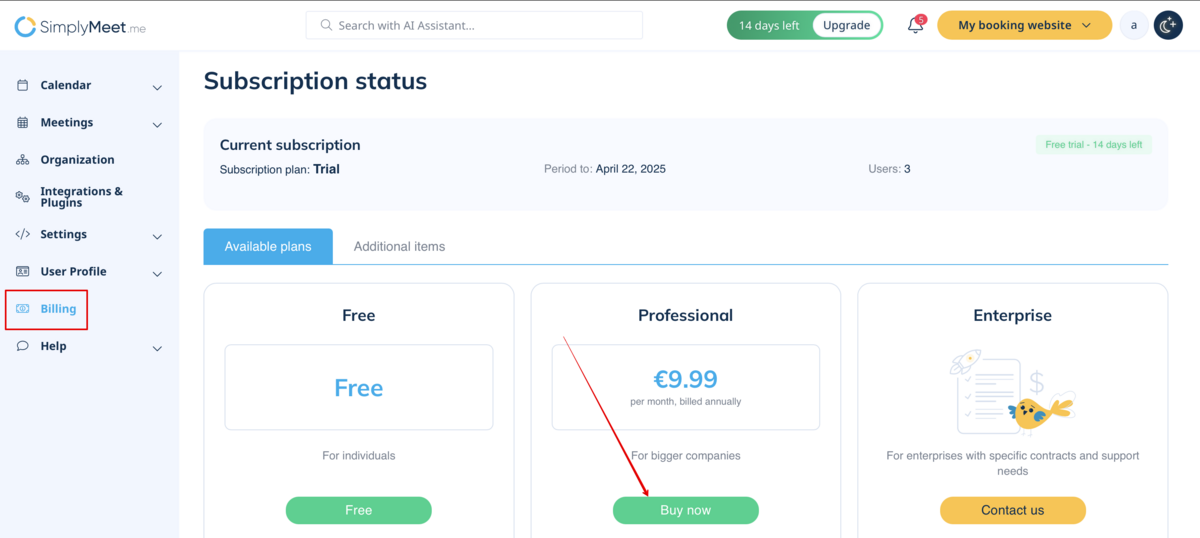 You can upgrade to the Professional Plan at any time: