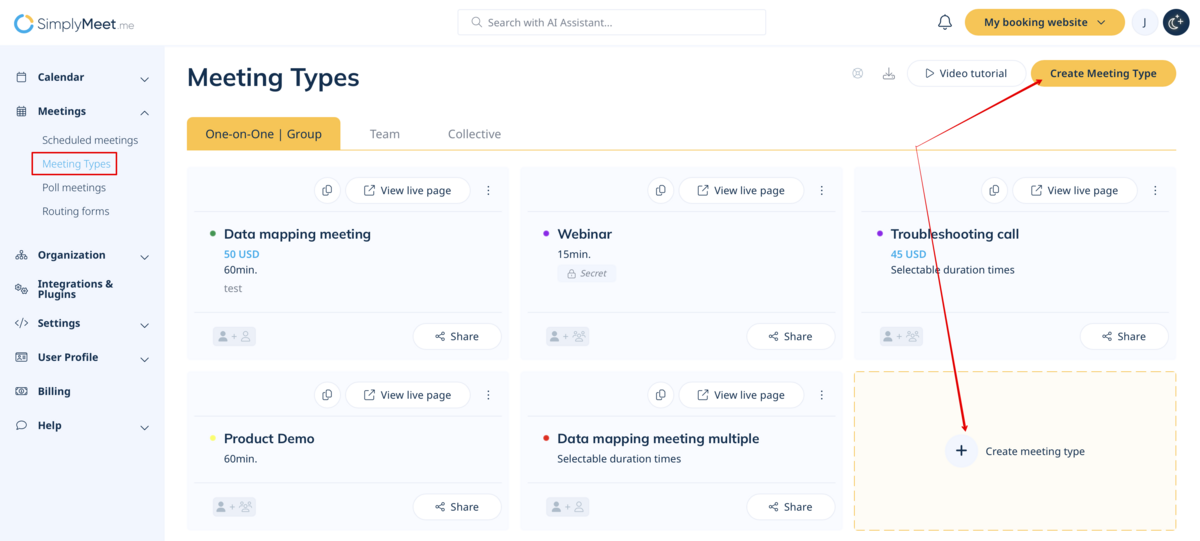 - Go to Meeting Types page.
